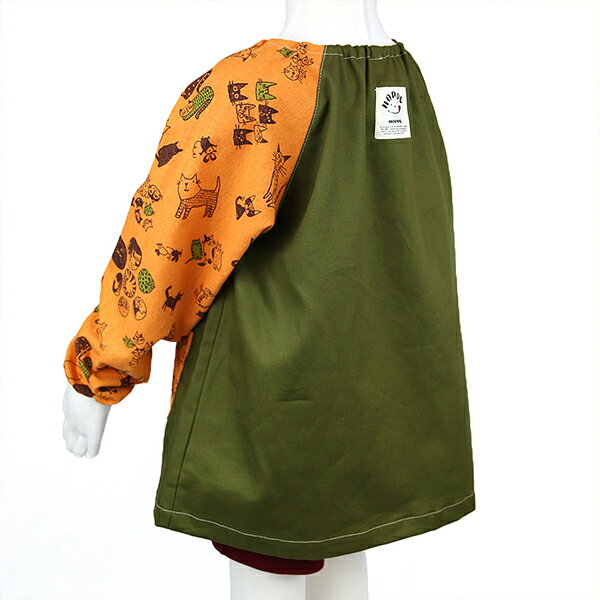 (素材)コットン80%・リネン20% ■商品サイズ110cm(着丈:48cm 袖丈:48.5cm 身幅:42cm ポケットサイズ:10cm×10cm)重さ140g ■ご注意販売商品は【コロにゃんこ オレンジ スモック】です。